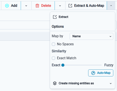 - On the Mapping tab, enhancements have been made to simplify extracting and mapping your source file. A single "Extract & Auto-Map" button now enables you to perform both actions in one click, with the option to further customize the mapping as needed.